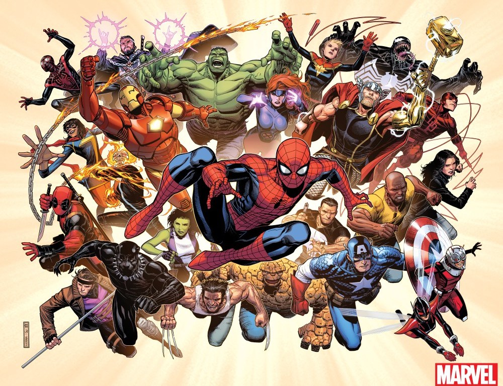 Other things to be pumped about, both Miles Morales and Ms. Marvel are featured and that’s a sigh of relief for me as they’re two of my favorite Marvel characters. It also shows that the company won’t be moving completely away from some of their newer, younger characters. We got three out of the four Defenders in action (where’s Iron Fist?) as I expect big things from Luke Cage and Jessica Jones going forward. The Punisher is lurking somewhere in the middle there and it seems like it’s been awhile since he’s been a major part of the Marvel Universe. Thor now has a gold hammer and a gold arm which raises some questions. And the newly resurrected Wolverine looks ready to rock.